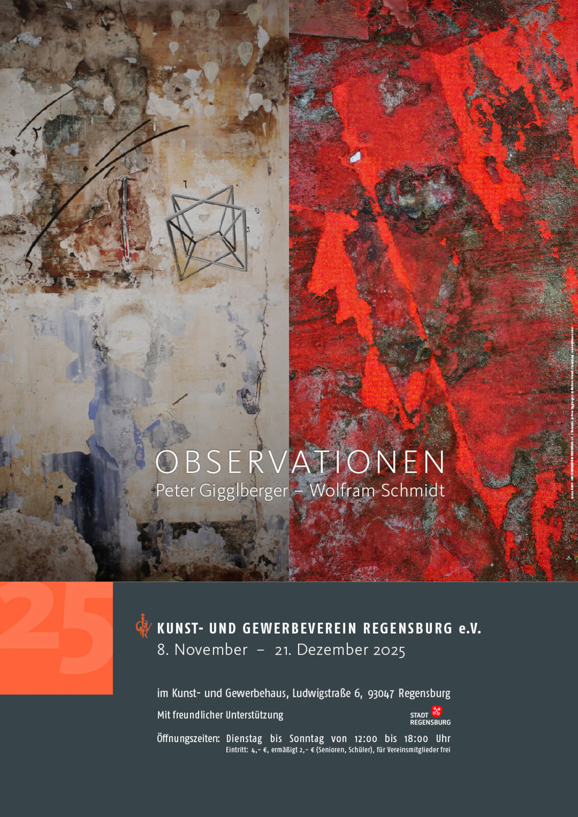 Anmeldung direkt vor Ort an der Ausstellungskasse. Am 07.12. um 15 Uhr Gesprächsrunde mit den Künstlern Peter Gigglberger und Wolfram Schmidt